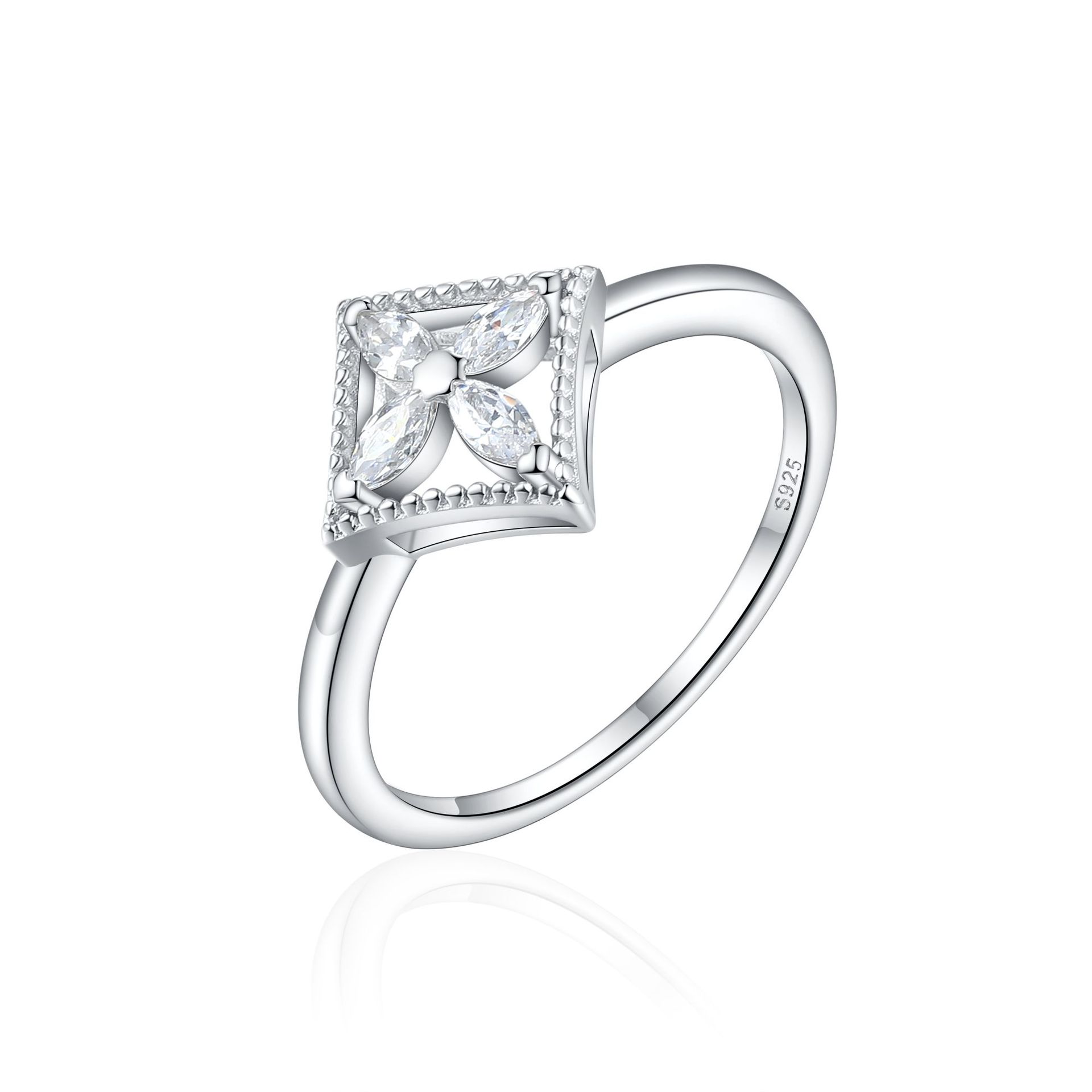 S925 Silver Square Horse Eye Zircon Four-Leaf Clover Ring for Women – Lucky Charm Fashion Jewelry