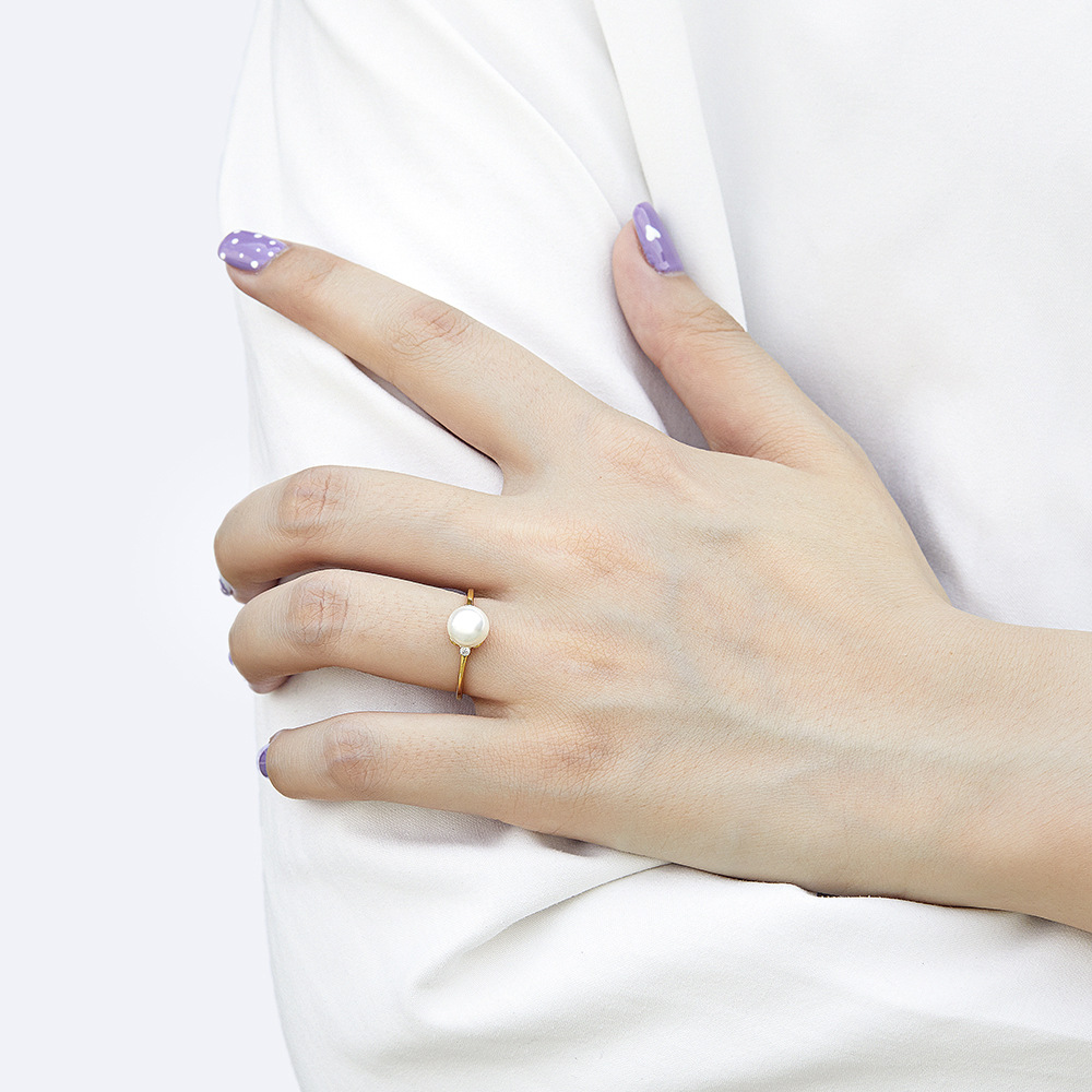 S925 Silver Gold Electroplated Pearl Ring for Women – Elegant Minimalist Inlaid Pearl Jewelry